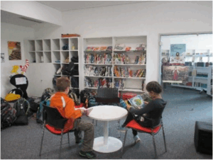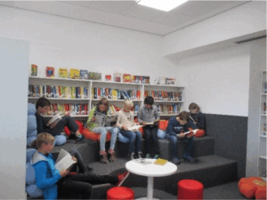 Unsere Schulbibliothek ist längst nicht mehr nur ein Ort zum Bücher-Ausleihen. Sie ist dein Dritter Raum (neben Klassenzimmer und Pausenhof), dein Place to be – zum Lernen, Stöbern, Kreativsein oder einfach nur zum entspannten Abhängen mit einem guten Buch. Mit dem Blick auf die „open concept library“ wird sich unsere Bib im Laufe des